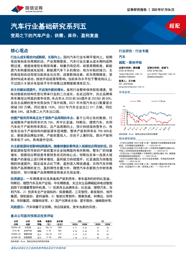 【国信证券】【20230706】国信证券:汽车行业基础研究系列五-变局之下的汽车产业-供需、库存、盈利复盘-66页