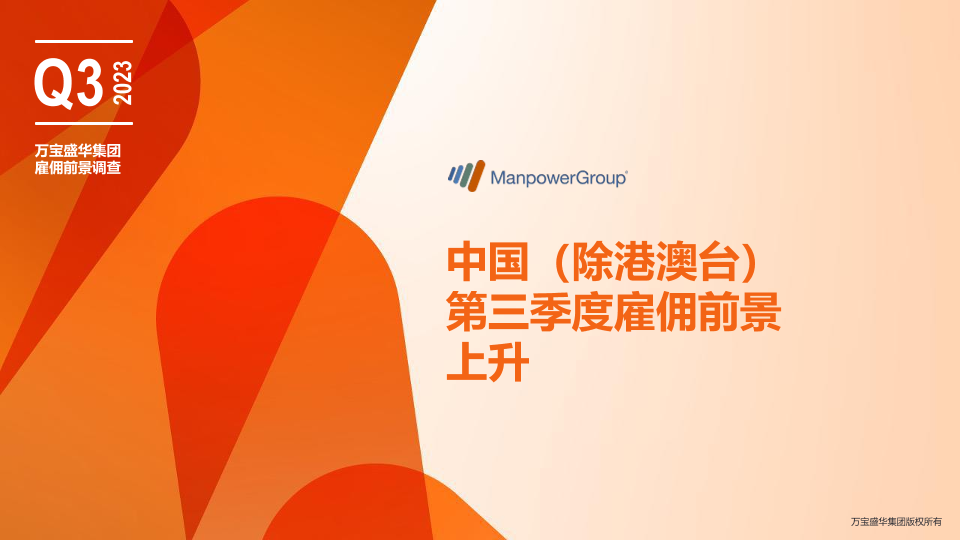 【万宝盛华集团】【2023】万宝盛华-中国2023Q3雇佣前景报告:第三季度雇佣前景上升-33页