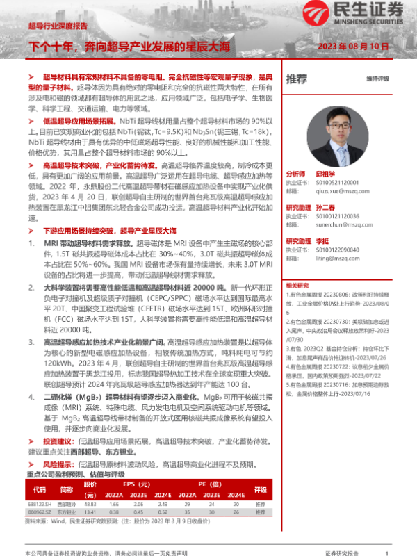 【民生证券】【20230810】超导行业深度报告-下个十年-奔向超导产业发展的星辰大海-65页