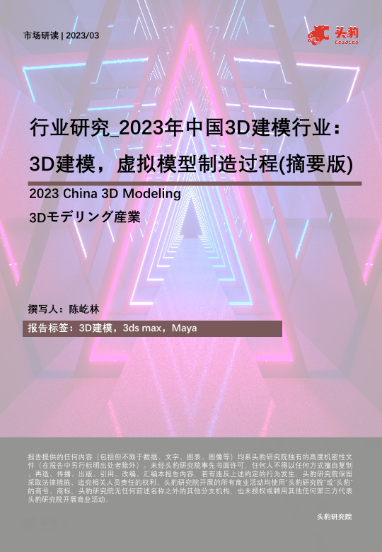 【头豹研究院】【202303】2023年中国3D建模行业-3D建模-虚拟模型制造过程(摘要版)-26页