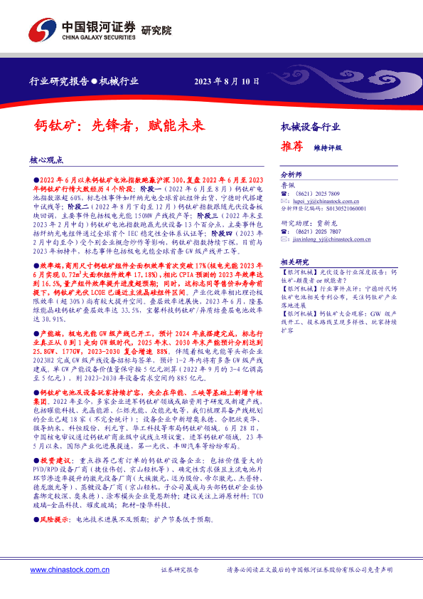 【银河证券】【20230731】钙钛矿:先锋者,赋能未来-23页