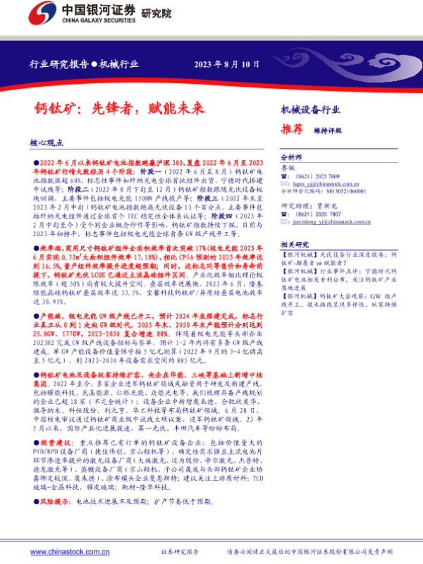 光伏 技术创新 投资分析 机械设备 钙钛矿