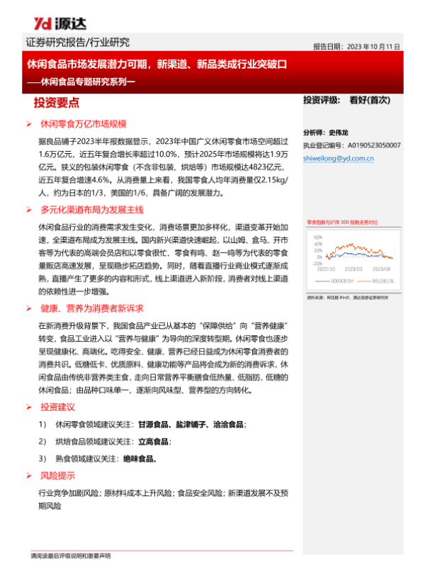 【源达信息】【2023】休闲食品市场发展潜力可期-新渠道、新品类成行业突破口-15页