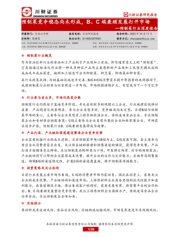 【川财证券】【20231017】预制菜竞争稳态尚未形成,B、C端兼顾发展打开市场-32页