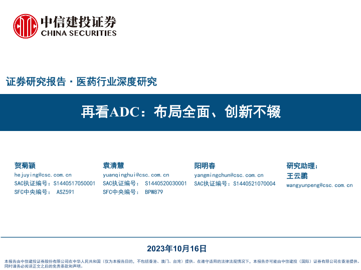 【中信建投证券】【20231016】医药行业深度研究:再看ADC,布局全面、创新不辍-124页