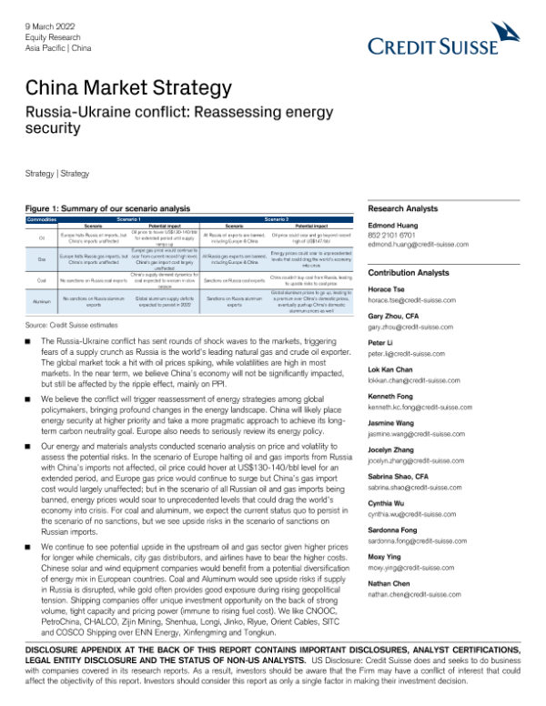 【瑞信】【20220309】中国投资策略之俄乌冲突:重新评估能源安全-39页