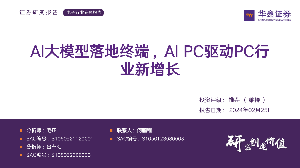 【华鑫证券】【20240225】20240326-电子行业专题报告:AI大模型落地终端,AIPC驱动PC行业新增长-30页