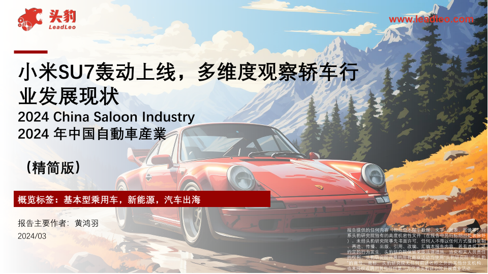 【头豹研究院】【202403】20240711-头豹:小米SU7轰动上线-多维度观察轿车行业发展现状-13页