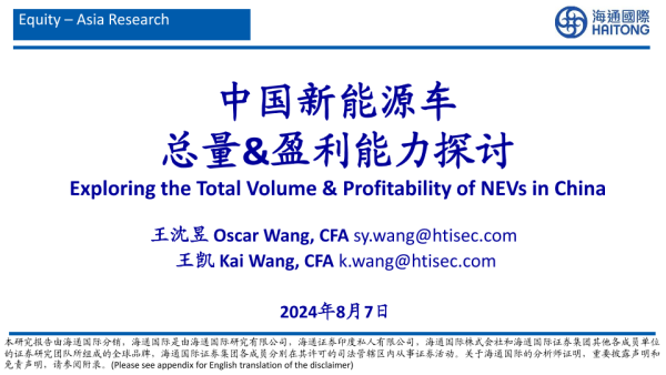 【海通国际】【20240807】中国新能源车总量&盈利能力探讨-54页