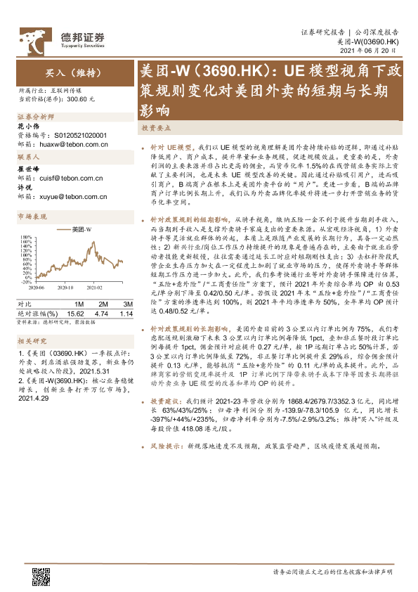【德邦证券】【20210620】美团:UE模型视角下政策规则变化对美团外卖的短期与长期影响-20页