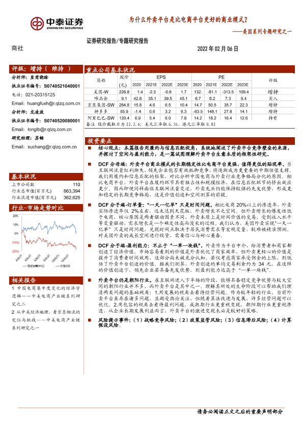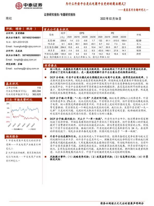 中泰证券 商业模式 外卖平台 电商平台 美团
