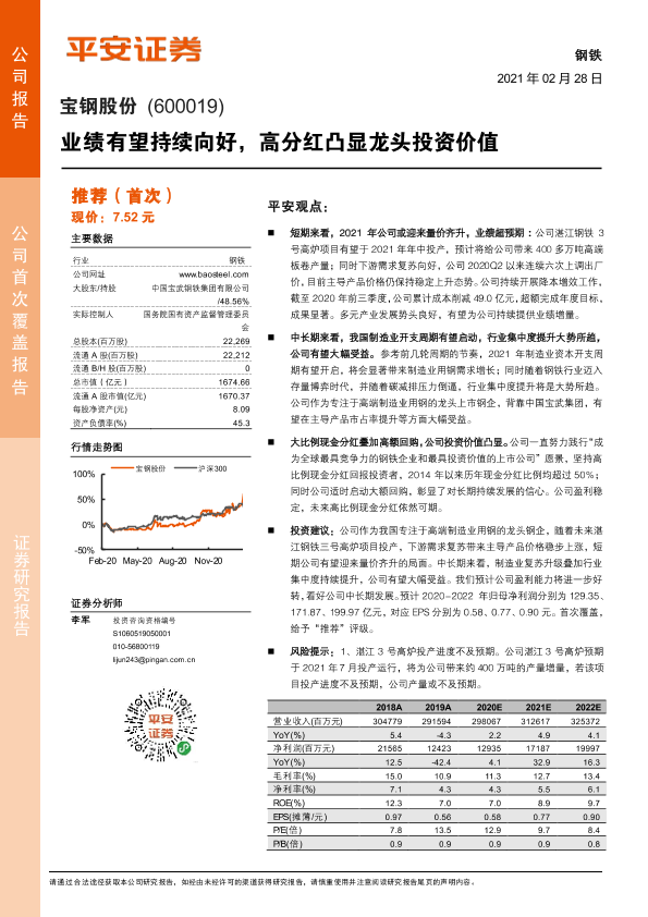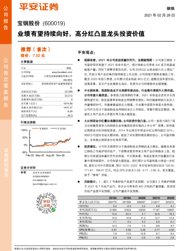 【平安证券】【20210228】宝钢股份:业绩有望持续向好,高分红凸显龙头投资价值-20页