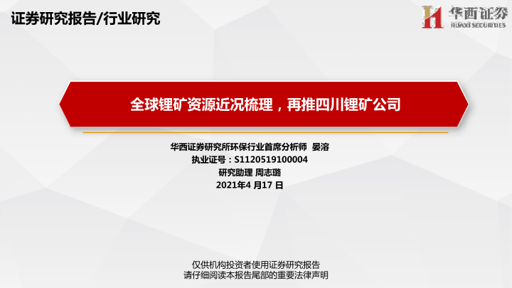 【华西证券】【20210417】全球锂矿资源近况梳理,再推四川锂矿公司-56页