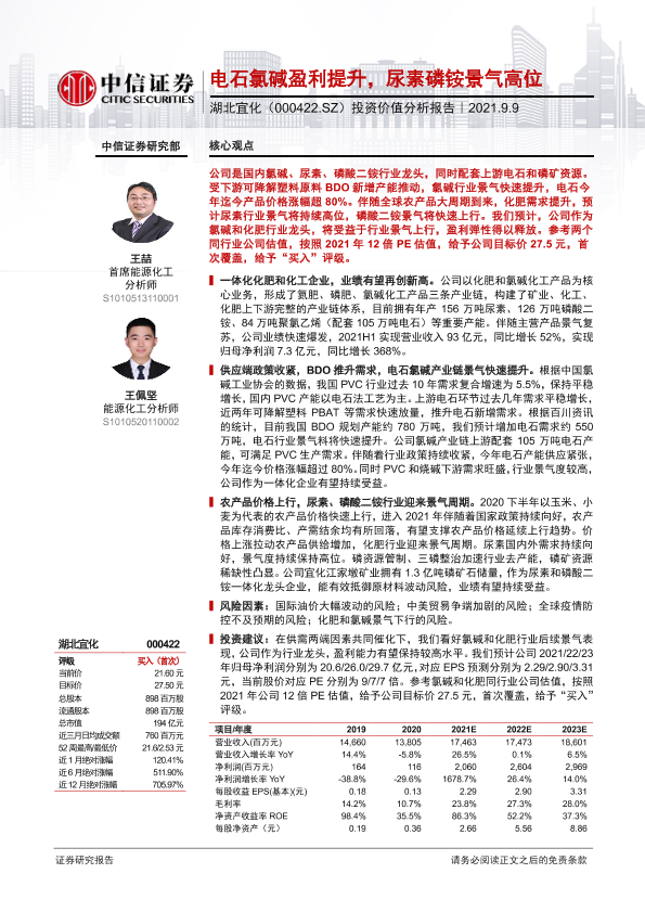 【中信证券】【20210909】2021.09.09-湖北宜化:电石氯碱盈利提升,尿素磷铵景气高位-28页