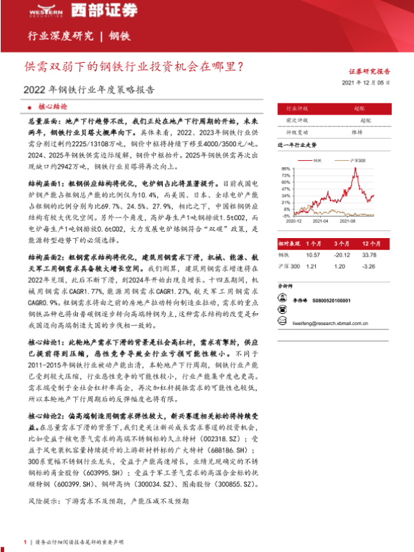 【西部证券】【20211205】2022年钢铁行业年度策略报告:供需双弱下的钢铁行业投资机会在哪里?-25页