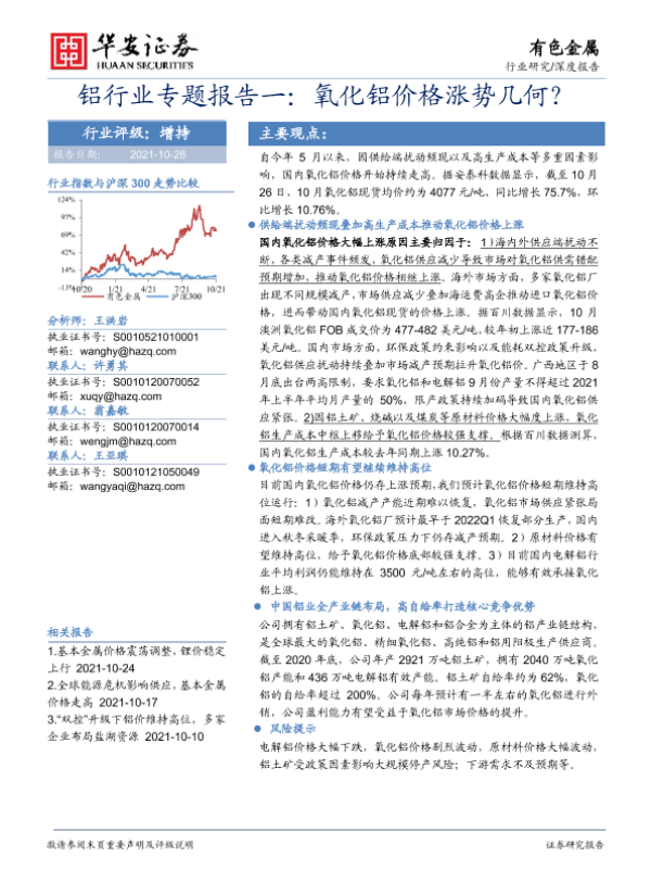 【华安证券】【20211028】铝行业专题报告一:氧化铝价格涨势几何?-14页