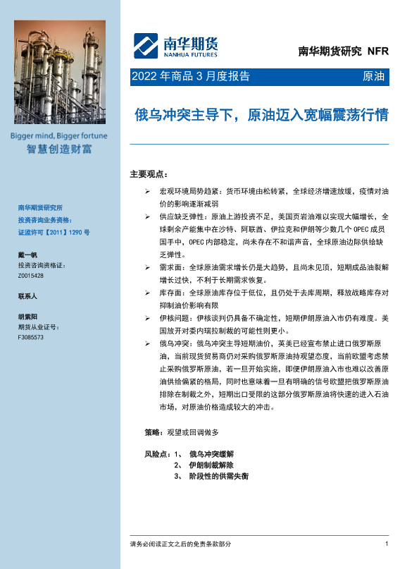 【南华期货】【20220314】2022年商品3月度报告-原油:俄乌冲突主导下,原油迈入宽幅震荡行情-16页