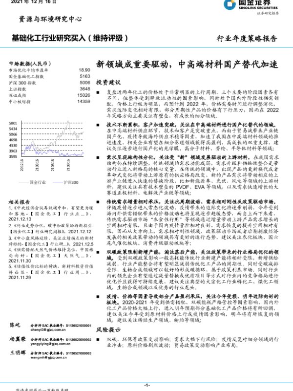 【国金证券】【20211216】2021.12.16-基础化工行业年度策略报告:新领域成重要驱动,中高端材料国产替代加速-88页