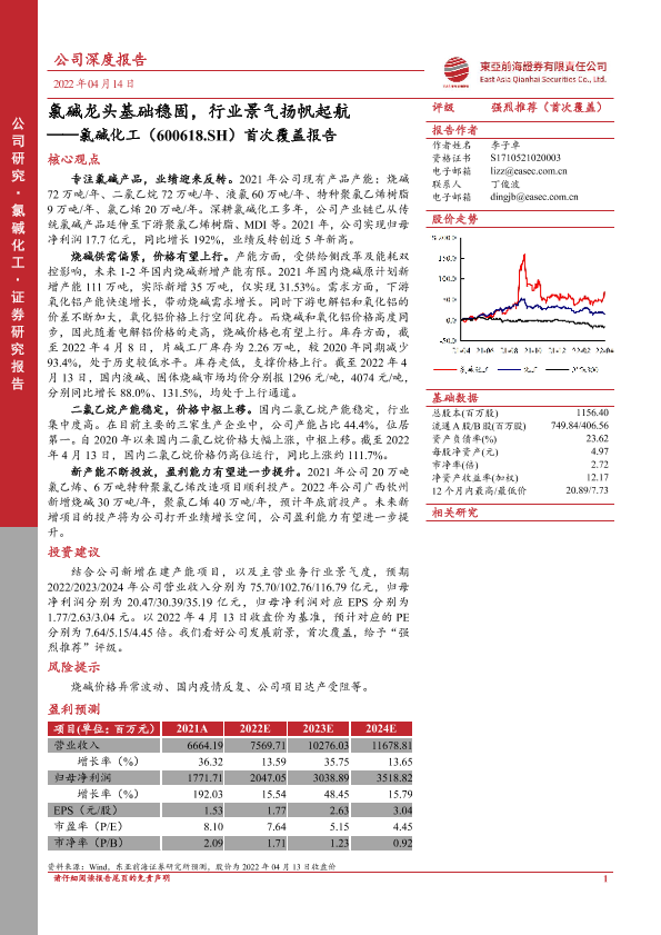 【东亚前海证券】【20220414】氯碱化工:氯碱龙头基础稳固,行业景气扬帆起航-23页