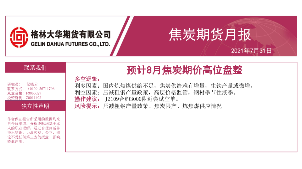 【格林大华期货】【20210731】焦炭期货月报:预计8月焦炭期价高位盘整-16页