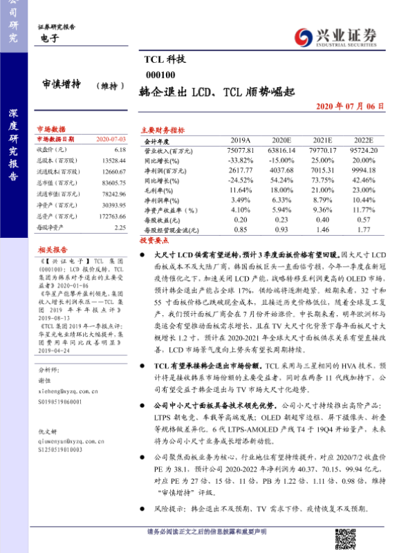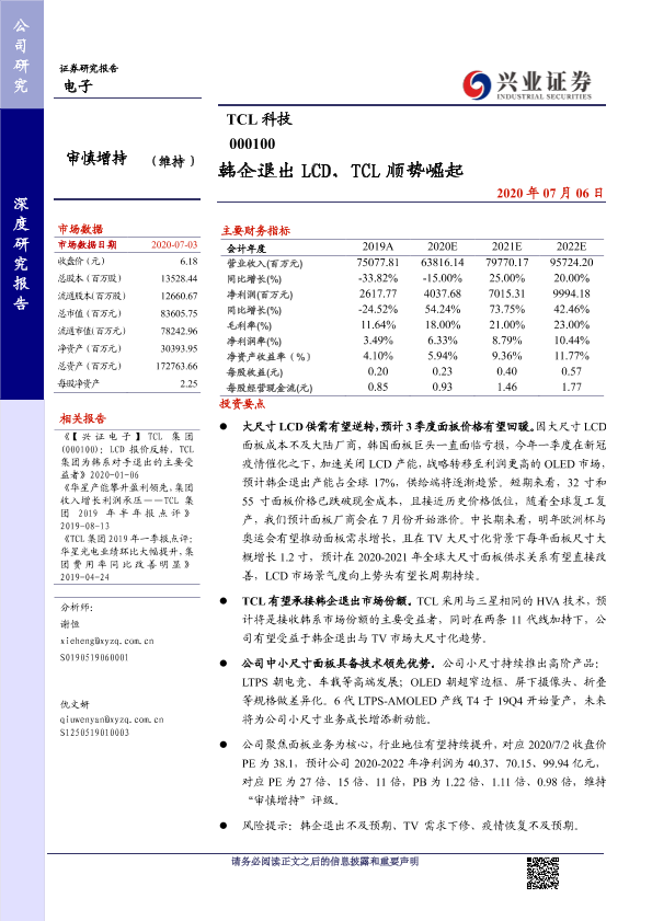 【兴业证券】【20200706】韩企退出 LCD,TCL顺势崛起-24页