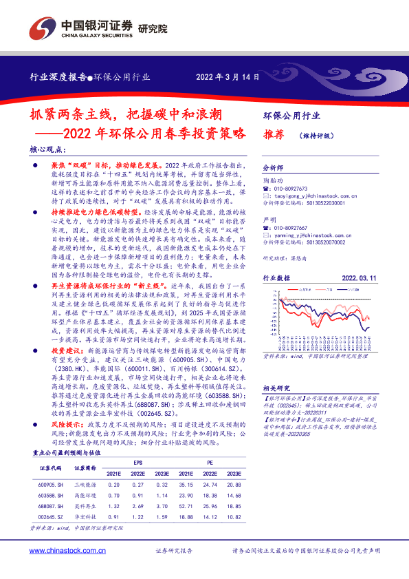 【银河证券】【20220314】2022年环保公用行业春季投资策略:抓紧两条主线,把握碳中和浪潮-24页