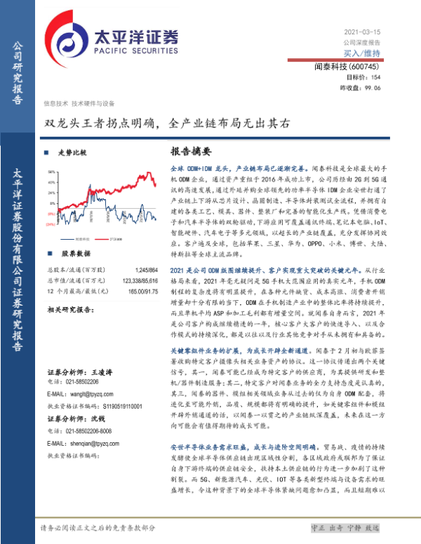 【太平洋证券】【20210315】闻泰科技:双龙头王者拐点明确,全产业链布局无出其右-66页