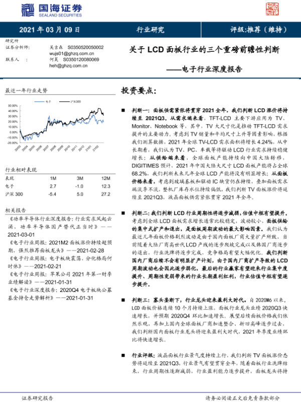 【国海证券】【20210309】关于LCD面板行业的三个重磅前瞻性判断-30页