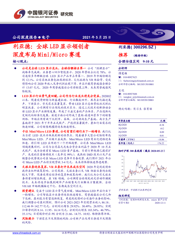 【银河证券】【20210525】利亚德:全球LED显示领创者,深度布局Mini、Micro赛道-32页