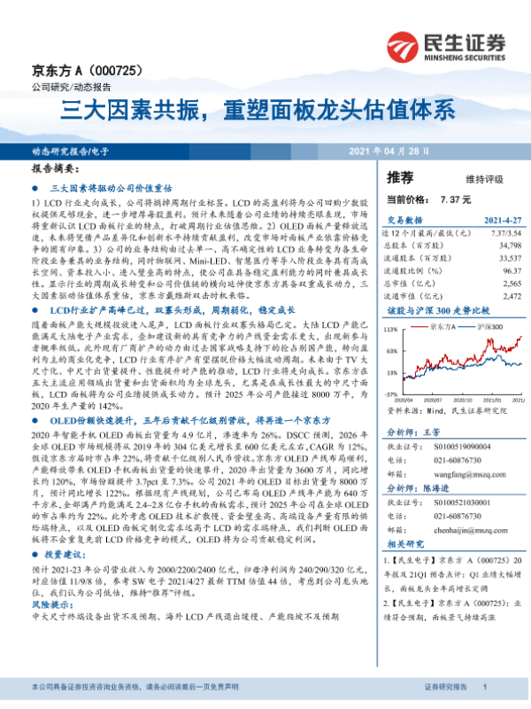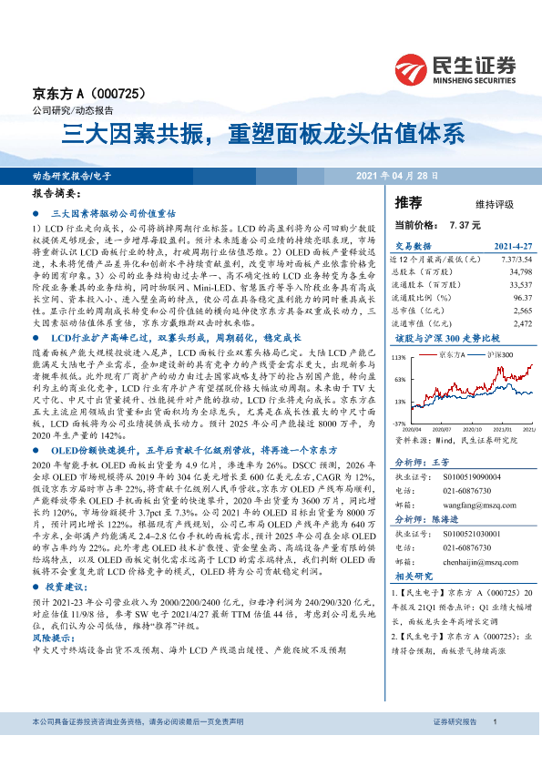【民生证券】【20210428】2021.04.28-京东方A:三大因素共振,重塑面板龙头估值体系-20页