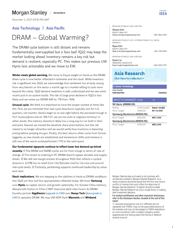 【Morgan Stanley】【20211202】亚太地区科技行业-DRAM:全球变暖?-30页