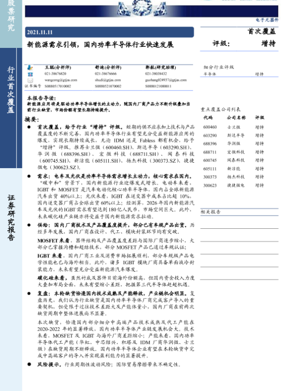 【国泰君安证券】【20211111】新能源需求引领,国内功率半导体行业快速发展-57页