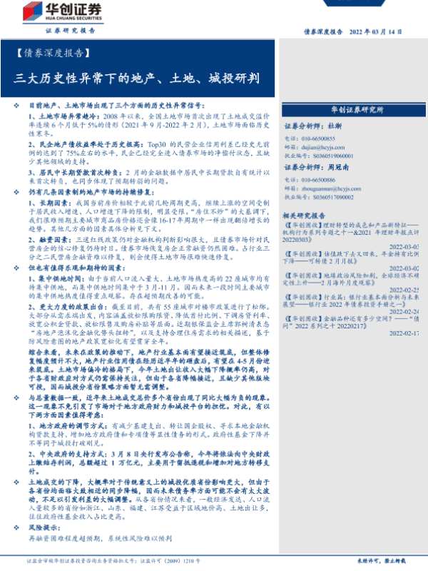 【华创证券】【20220314】【债券深度报告】三大历史性异常下的地产、土地、城投研判-15页