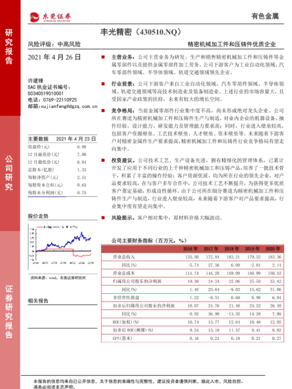 【东莞证券】【20210426】2021.04.26-丰光精密:精密机械加工件和压铸件优质企业-30页