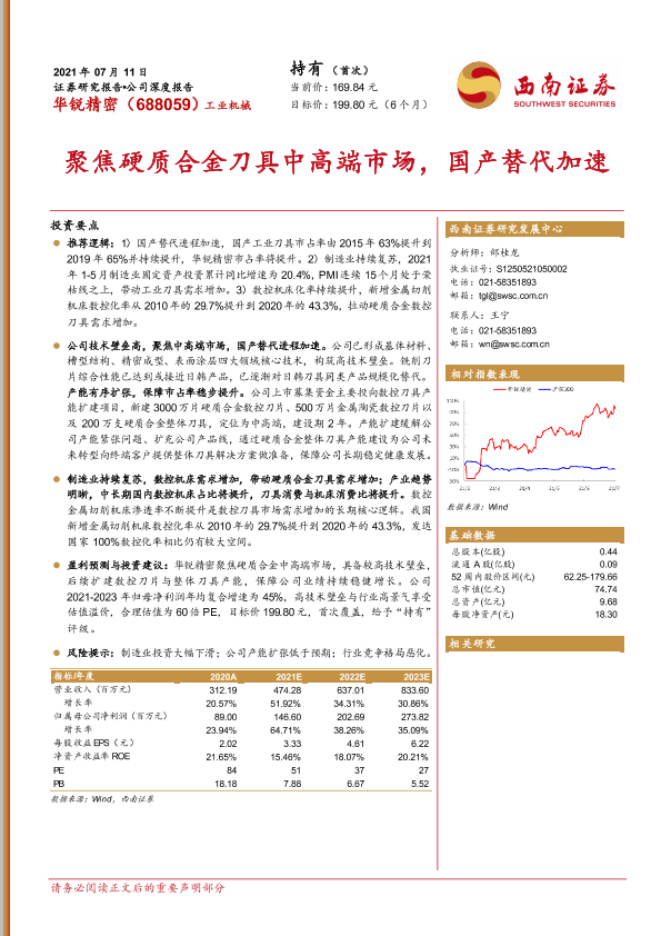 【西南证券】【20210711】华锐精密:聚焦硬质合金刀具中高端市场,国产替代加速-29页