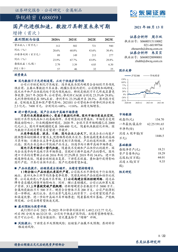 【东吴证券】【20210813】华锐精密:国产化进程加速,数控刀具新星未来可期-22页
