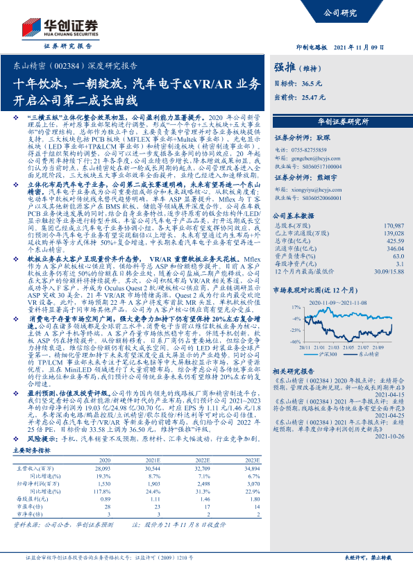 【华创证券】【20211109】2021.11.09-东山精密:十年饮冰,一朝绽放,汽车电子&VR、AR业务开启公司第二成长曲线-65页
