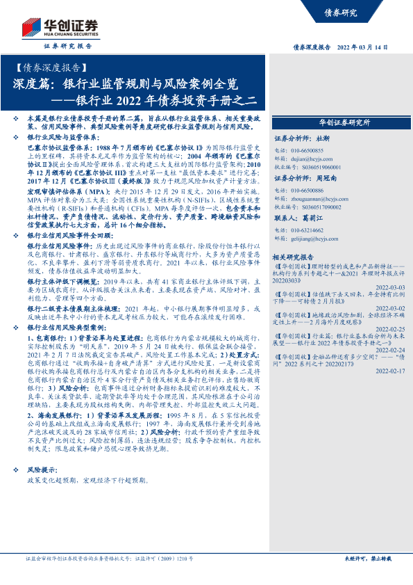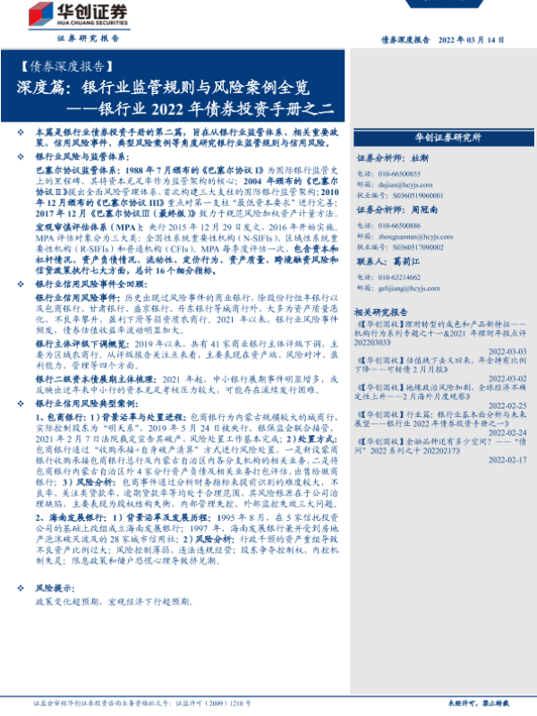 【华创证券】【20220314】【债券深度报告】银行业2022年债券投资手册之二:深度篇,银行业监管规则与风险案例全览-26页