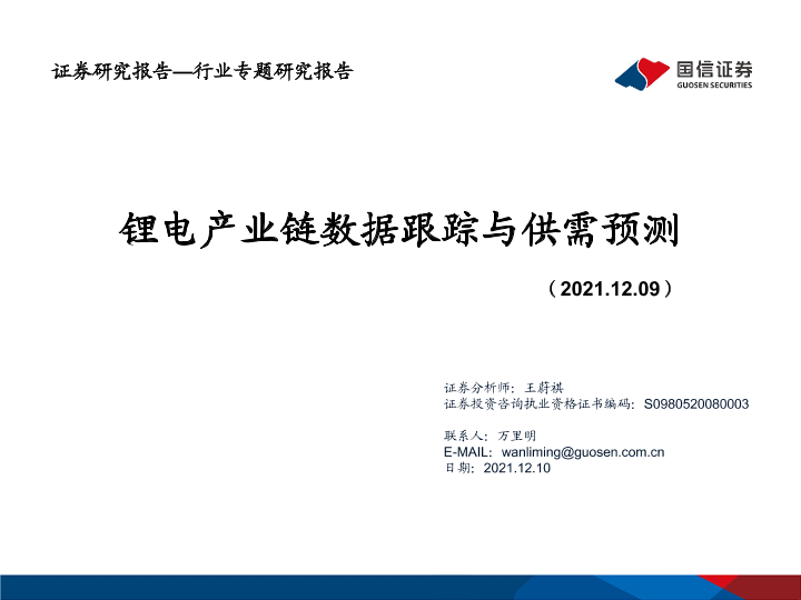 【国信证券】【20211209】2021.12.09-锂电产业链数据跟踪与供需预测-59页