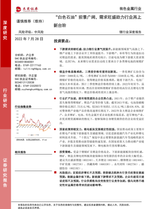 【东莞证券】【20220728】2022-07-28-锂行业深度报告-“白色石油”前景广阔-需求旺盛助力行业再上新台阶-24页