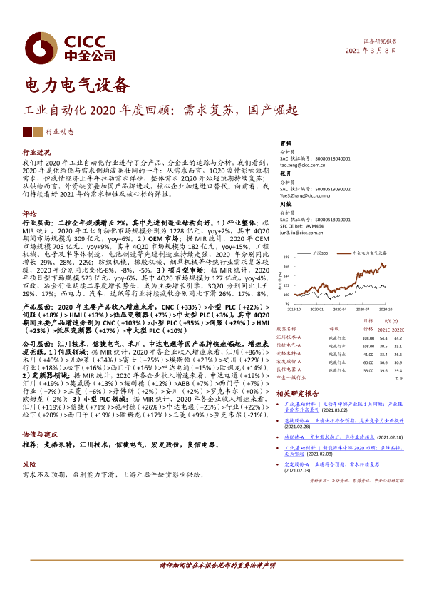 【中金公司】【20210308】电力电气设备-工业自动化2020年度回顾:需求复苏,国产崛起-23页