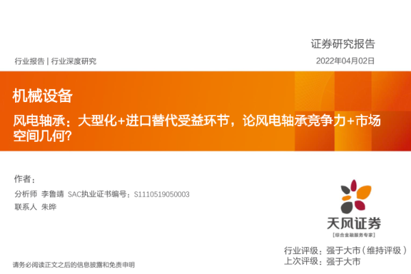 【天风证券】【20220402】风电轴承:大型化+进口替代受益环节,论风电轴承竞争力+市场空间几何?-42页