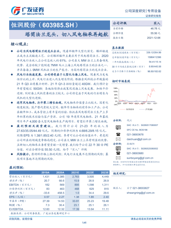 【广发证券】【20211206】恒润股份:塔筒法兰龙头,切入风电轴承再起航-41页