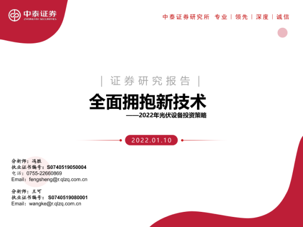 【中泰证券】【20220110】2022年光伏设备投资策略:全面拥抱新技术-55页