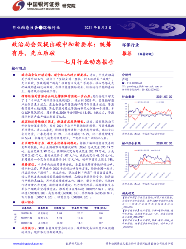 【银河证券】【20210802】环保行业七月行业动态报告:政治局会议提出碳中和新要求,统筹有序,先立后破-20页
