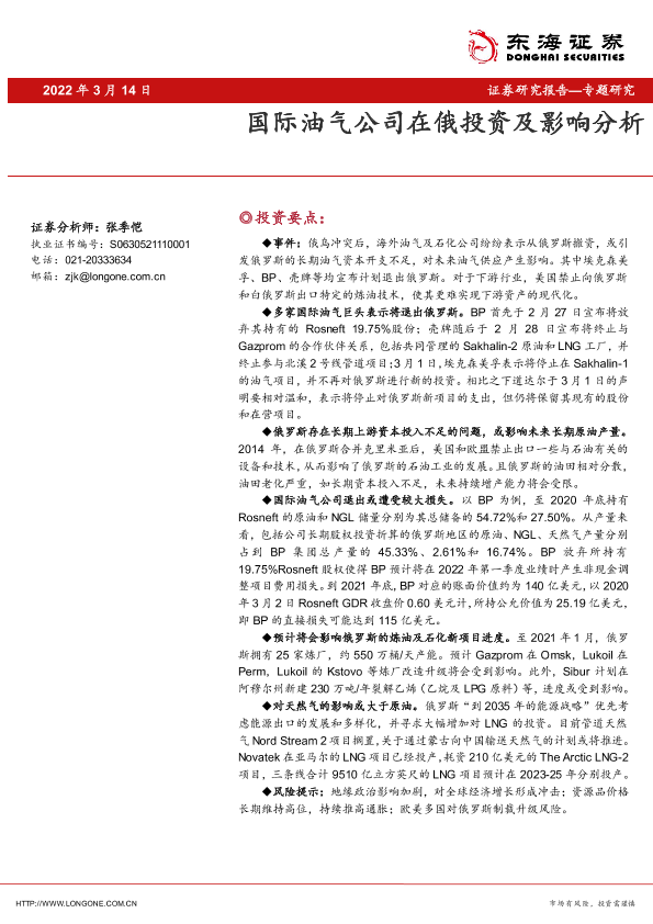 【东海证券】【20220314】国际油气公司在俄投资及影响分析-21页