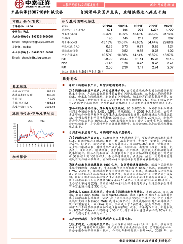 【中泰证券】【20210629】长盛轴承:自润滑轴承国产龙头,业绩换挡进入高成长期-38页
