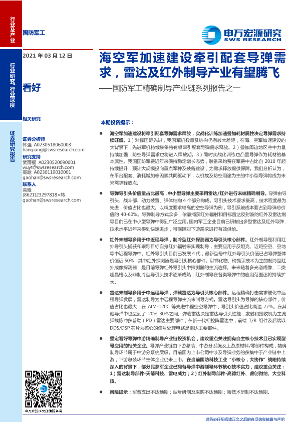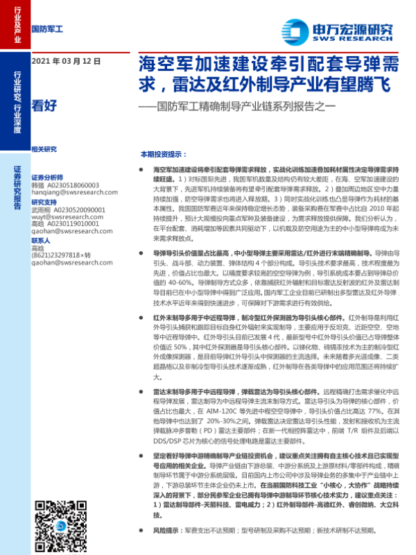 【申万宏源】【20210312】国防军工精确制导产业链系列报告之一:海空军加速建设牵引配套导弹需求,雷达及红外制导产业有望腾飞-33页