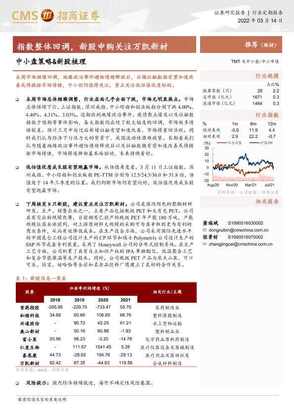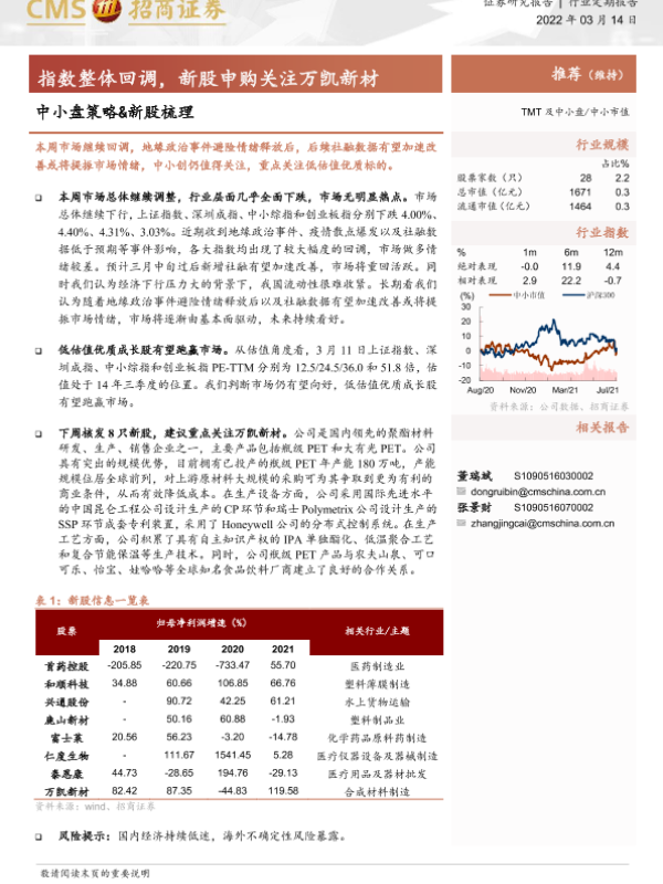 万凯新材 中小盘策略 低估值优质成长股 市场回调 新股梳理
