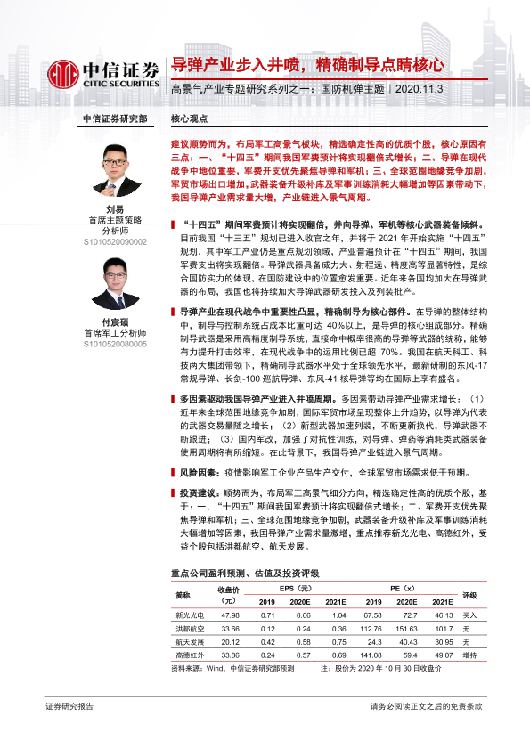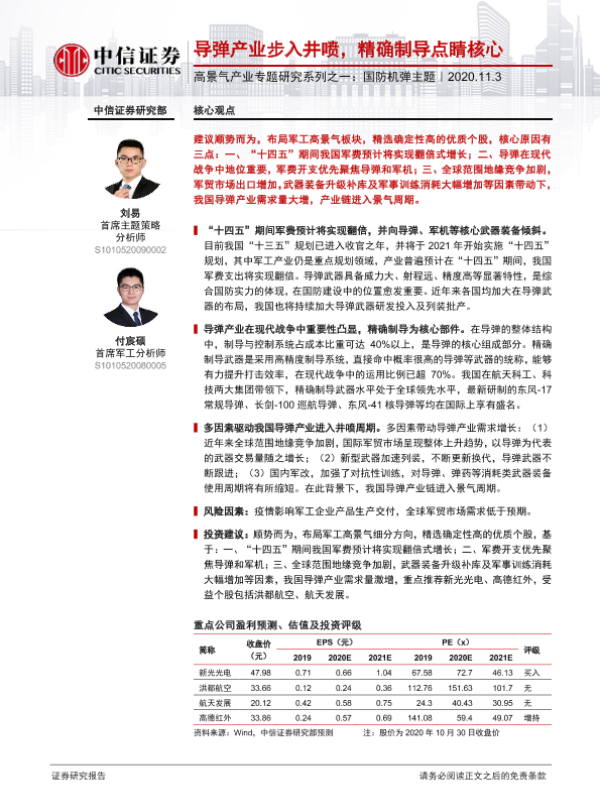 【中信证券】【20201103】2020.11.03-高景气产业专题研究系列之一:导弹产业步入井喷,精确制导点睛核心-26页